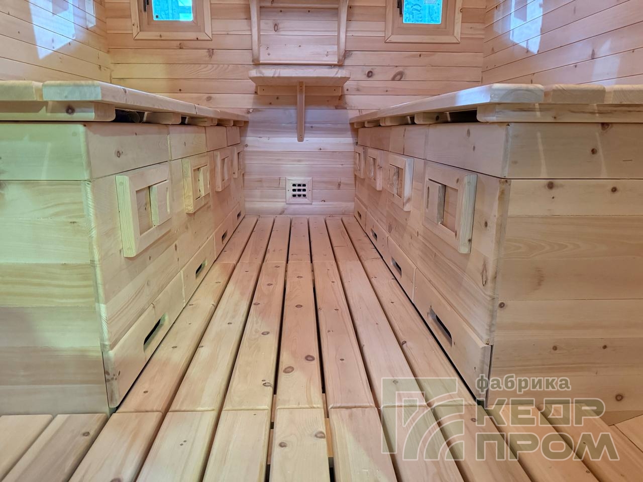 - Продуманная эргономика: Ульи расположены под спальными местами (рундуками), что экономит пространство. Вся система вентилируется и спроектирована для легкого обслуживания и доступа к пчелам.